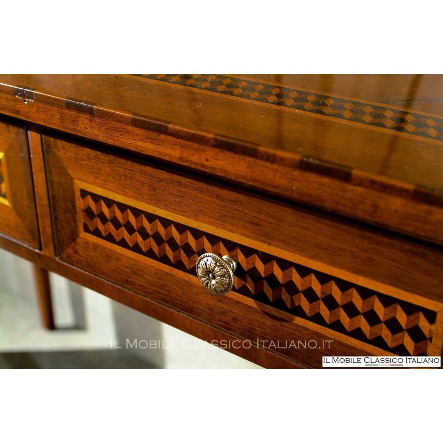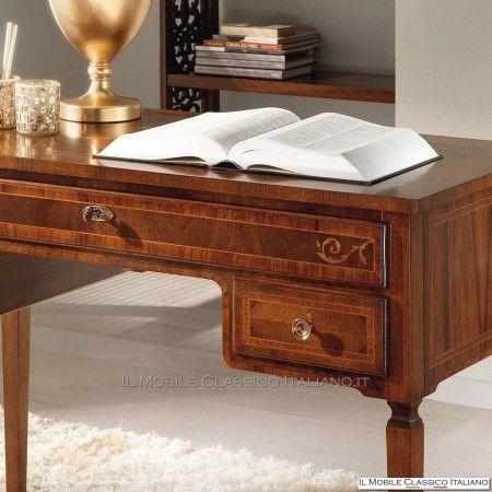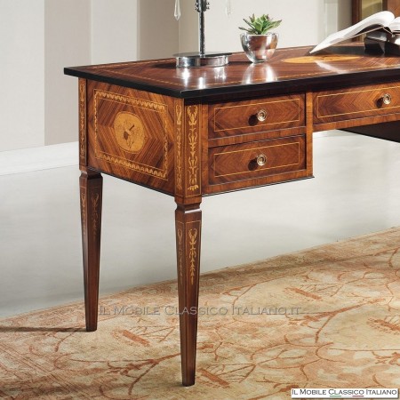 Scrittoio classico intarsiato costruito dai nostri artigiani in Italia selezionando accuratamente tutte le varie essenze e cercando di far rivivere la tradizione della costruzione di mobili.