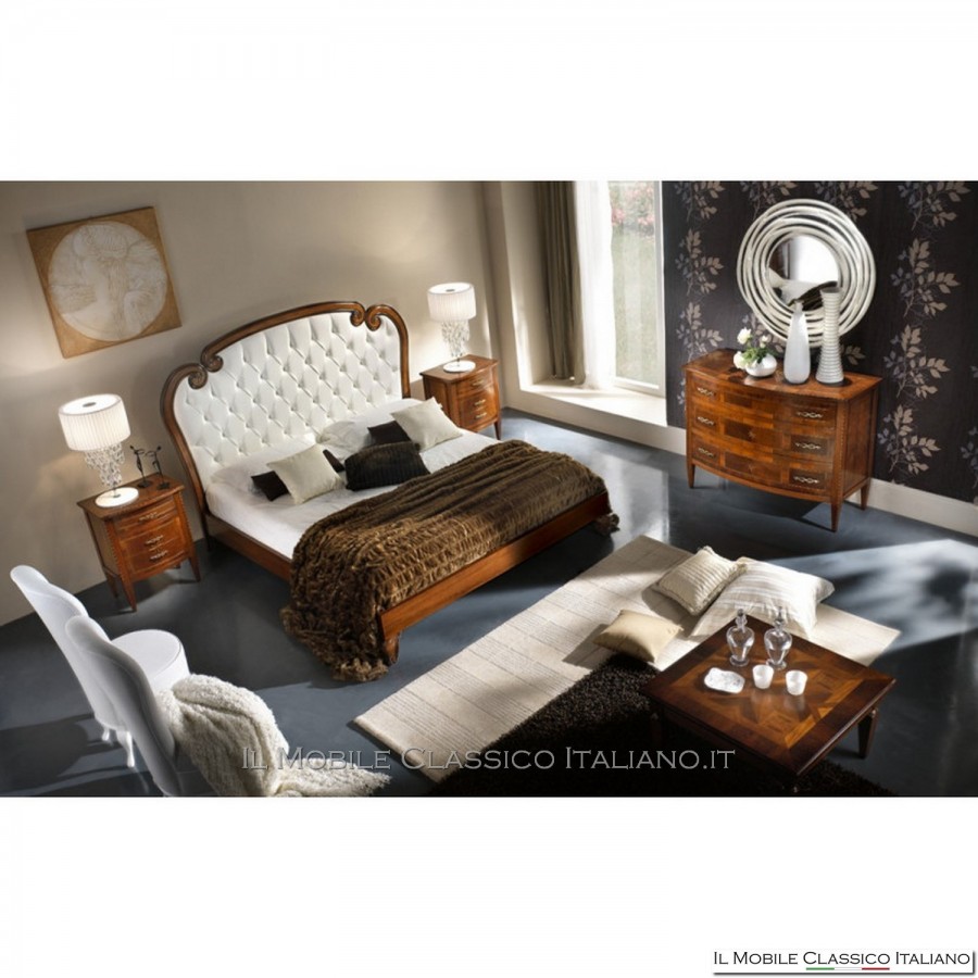 Il comodino intarsiato in noce è caratterizzato da forme sinuose, in grado di unire perfettamente eleganza e funzionalità in un'unica soluzione, in quanto è molto contenitivo per indumenti o oggetti personali o semplicemente per appoggiare la vostra bajour.